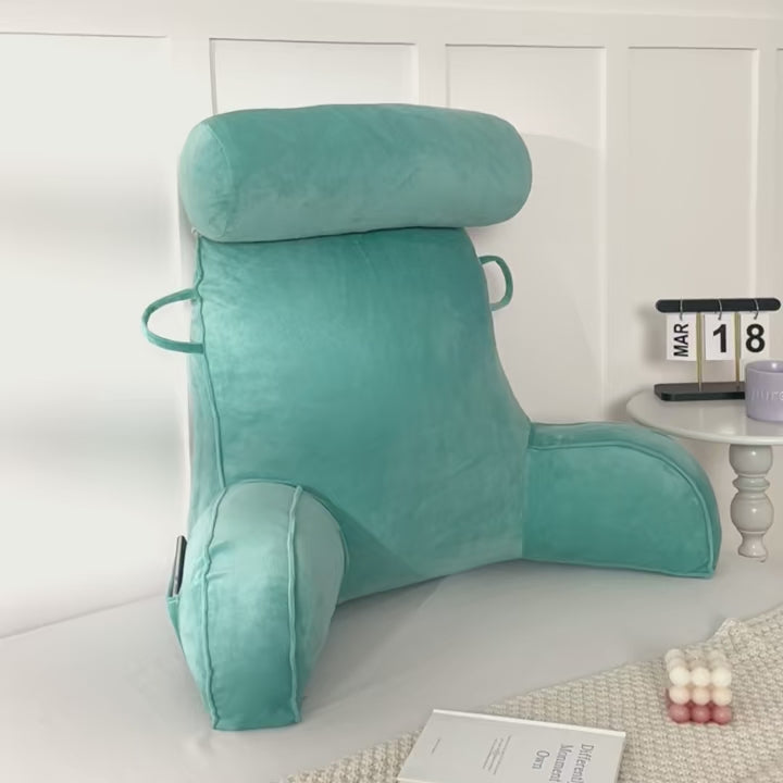 Coussin idéal pour lire au lit, mon dos ne me fait plus mal. Les accoudoirs sont parfaits malgré leur taille réduite.